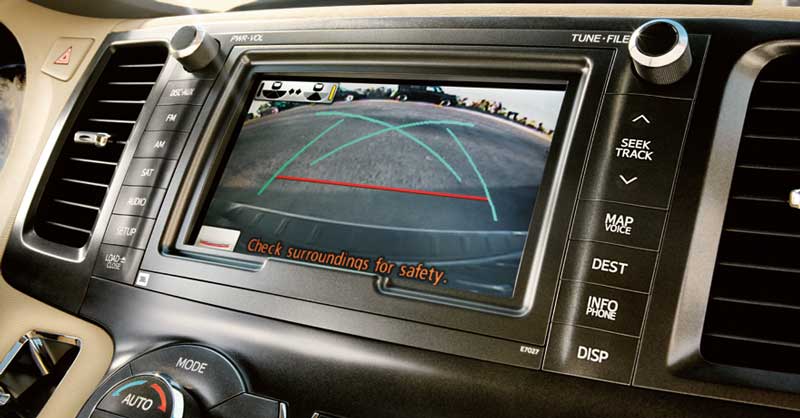 Wide-angle cameras give the driver a clear view of what's behind when you're backing up. It's particularly useful in large cars like this Toyota Sienna minivan.