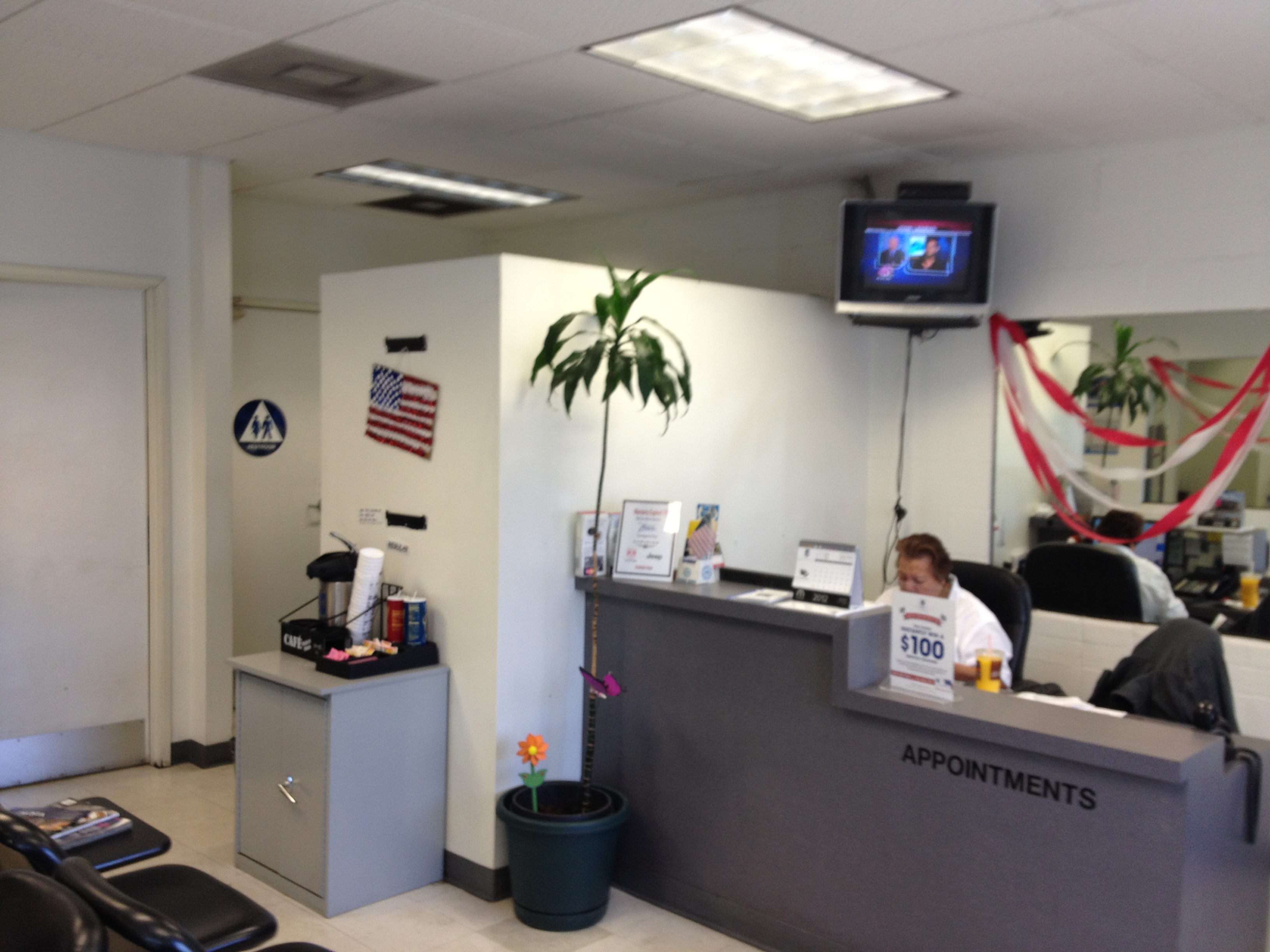 The service people never found the electronic gremlins that plagued my outside temperature gauge (constantly wrong) or why the climate control system didn’t properly sense the cabin temperature, but I was horrified by the customer “lounge” which hadn’t been updated since the building was built, probably back in the 1970s. The ceiling tiles were stained from ancient water leaks. The coffee “station” could have come out of an episode of The Office. The windowless room was truly soul-sucking.